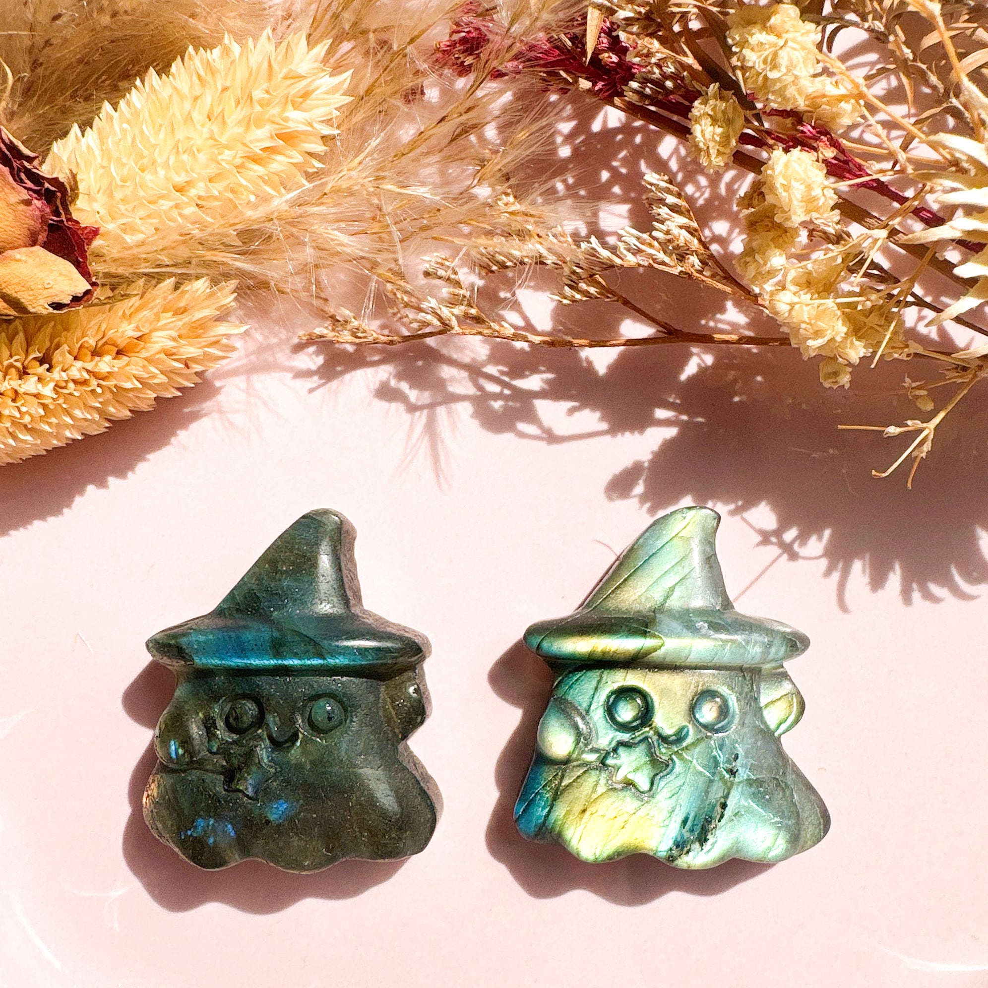 ラブラドライトの魔法の杖を持った可愛い魔女おばけちゃん♡両面にシラーが確認できます♡Aちゃんは両面ブルーとオレンジのシラーが美しい子です♡