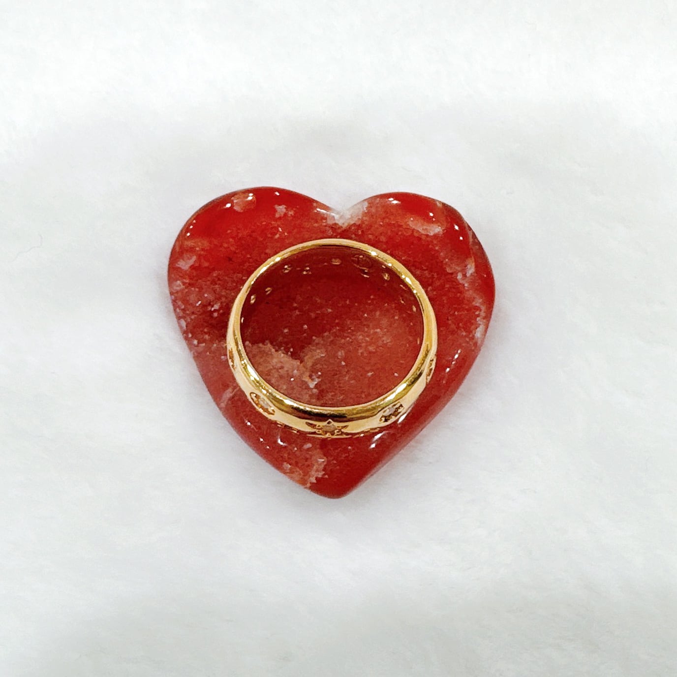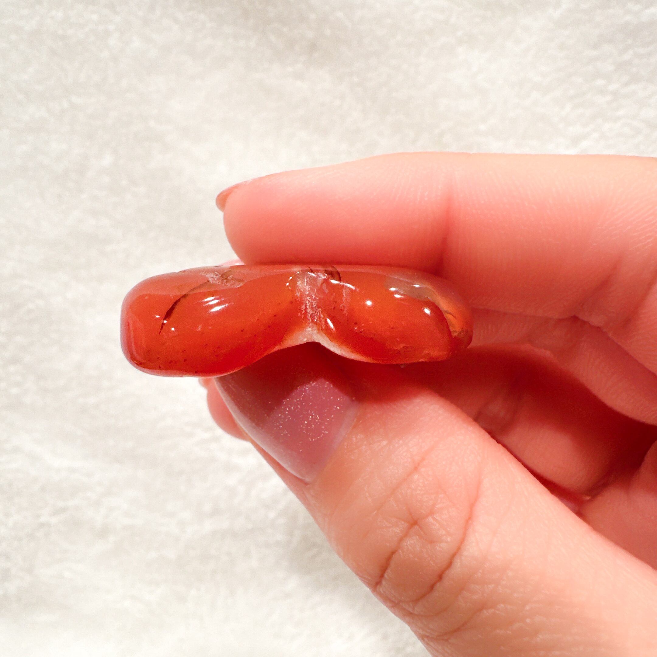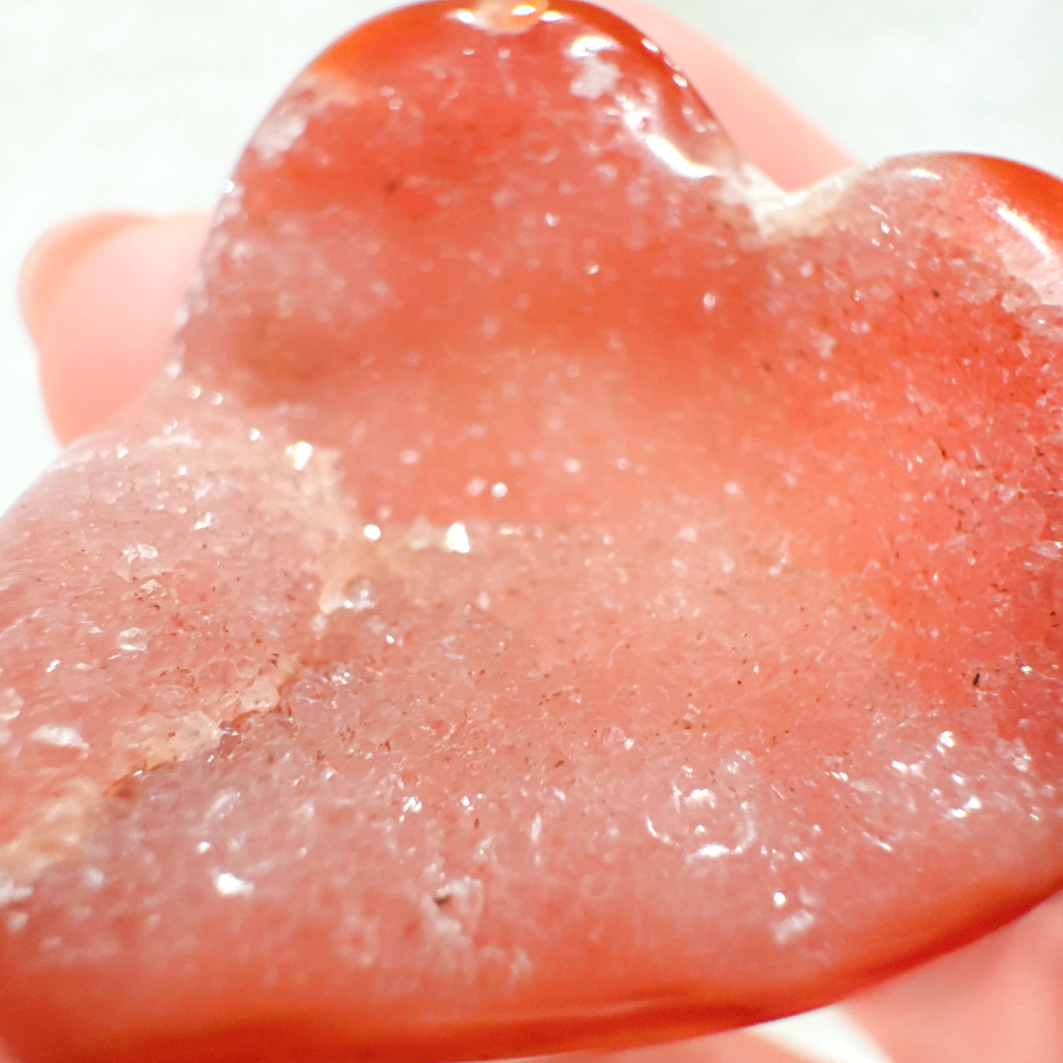 ハートシェイプのドゥルージーカーネリアン♡ハートちゃんが笑っているように見える笑口でGちゃんは表側がほぼドゥルージーでキラキラな子です♡ライトアップするとまた違った表情を見せてくれます♡お気に入りのリング置きや浄化にも♡