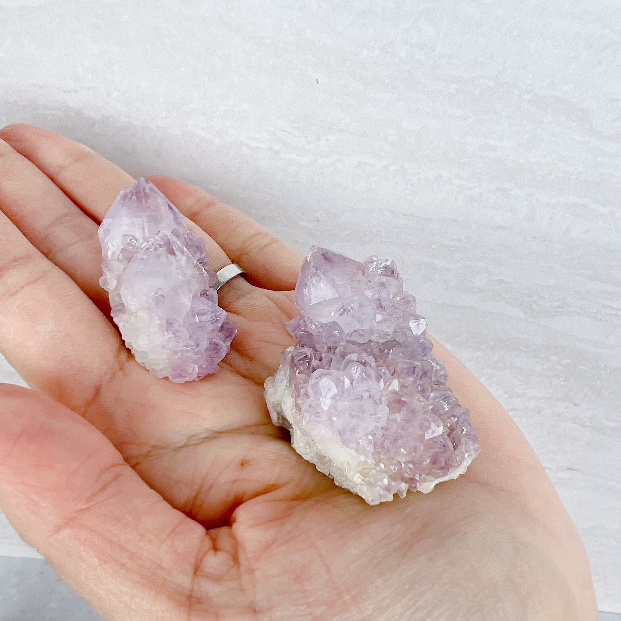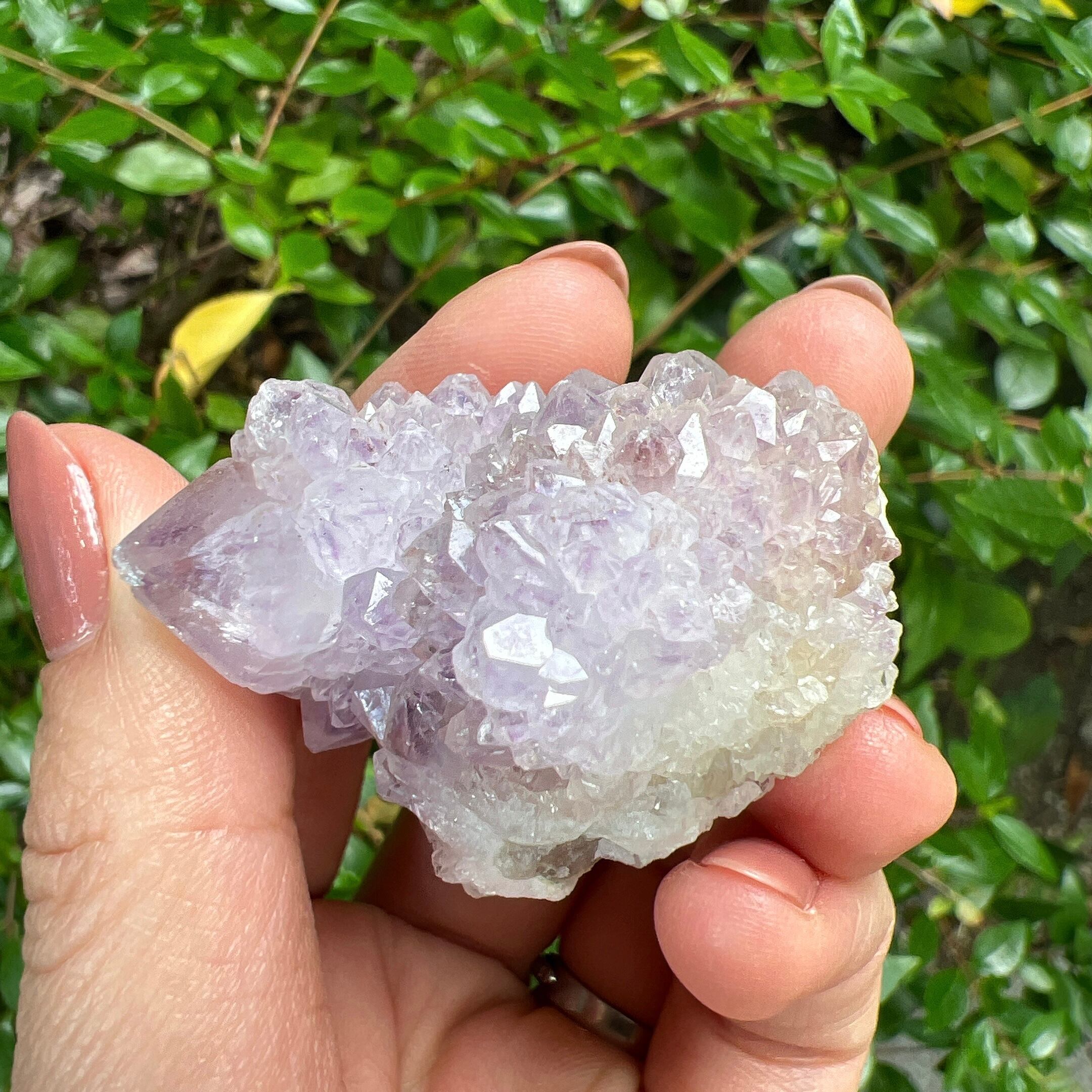 細かい結晶がキラキラしているのが特徴のアメジスト。この子は角度によってハートに見えませんか?癒されます♡