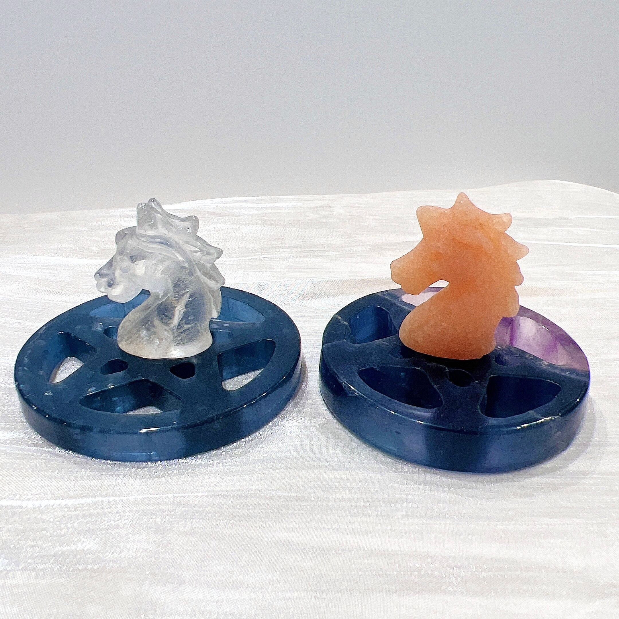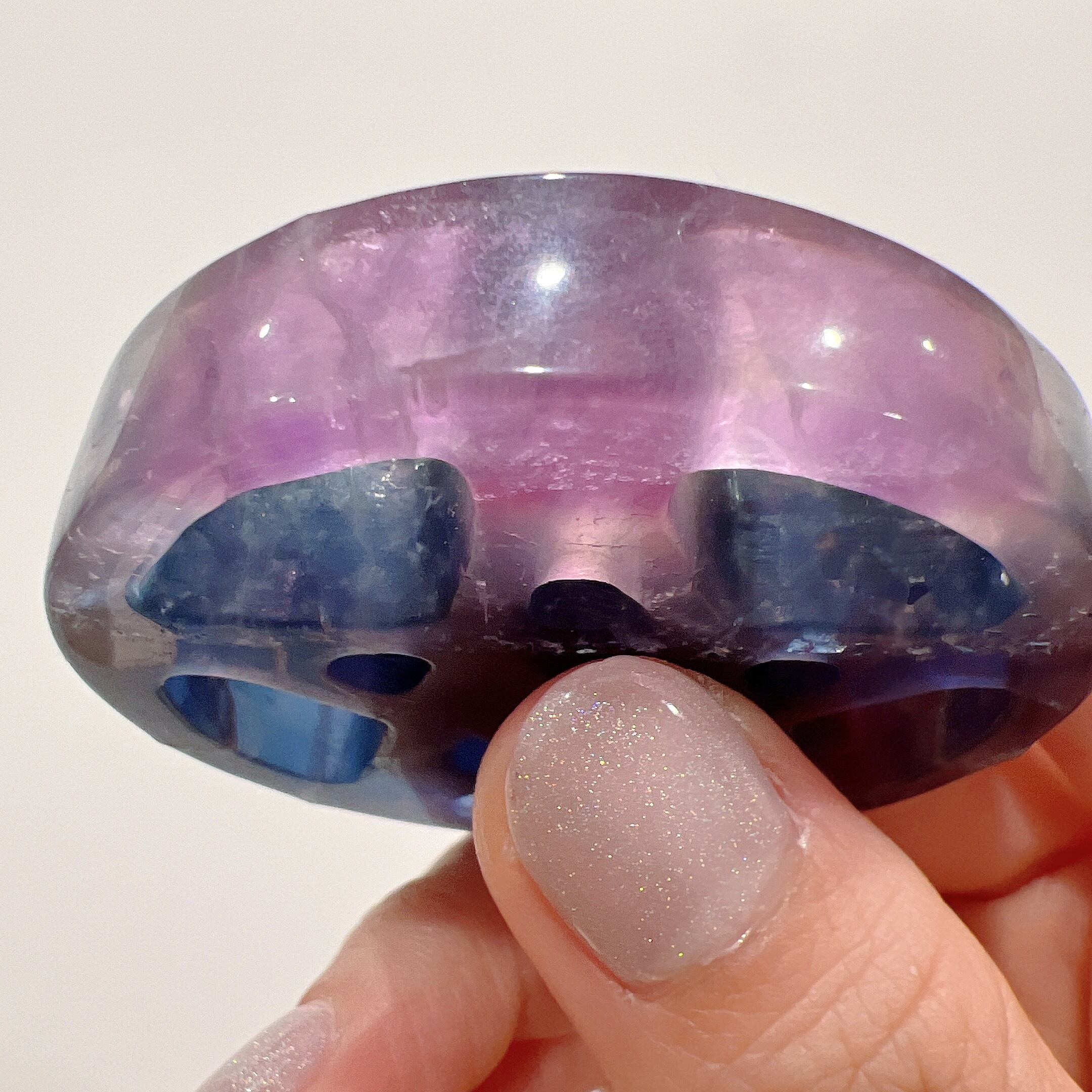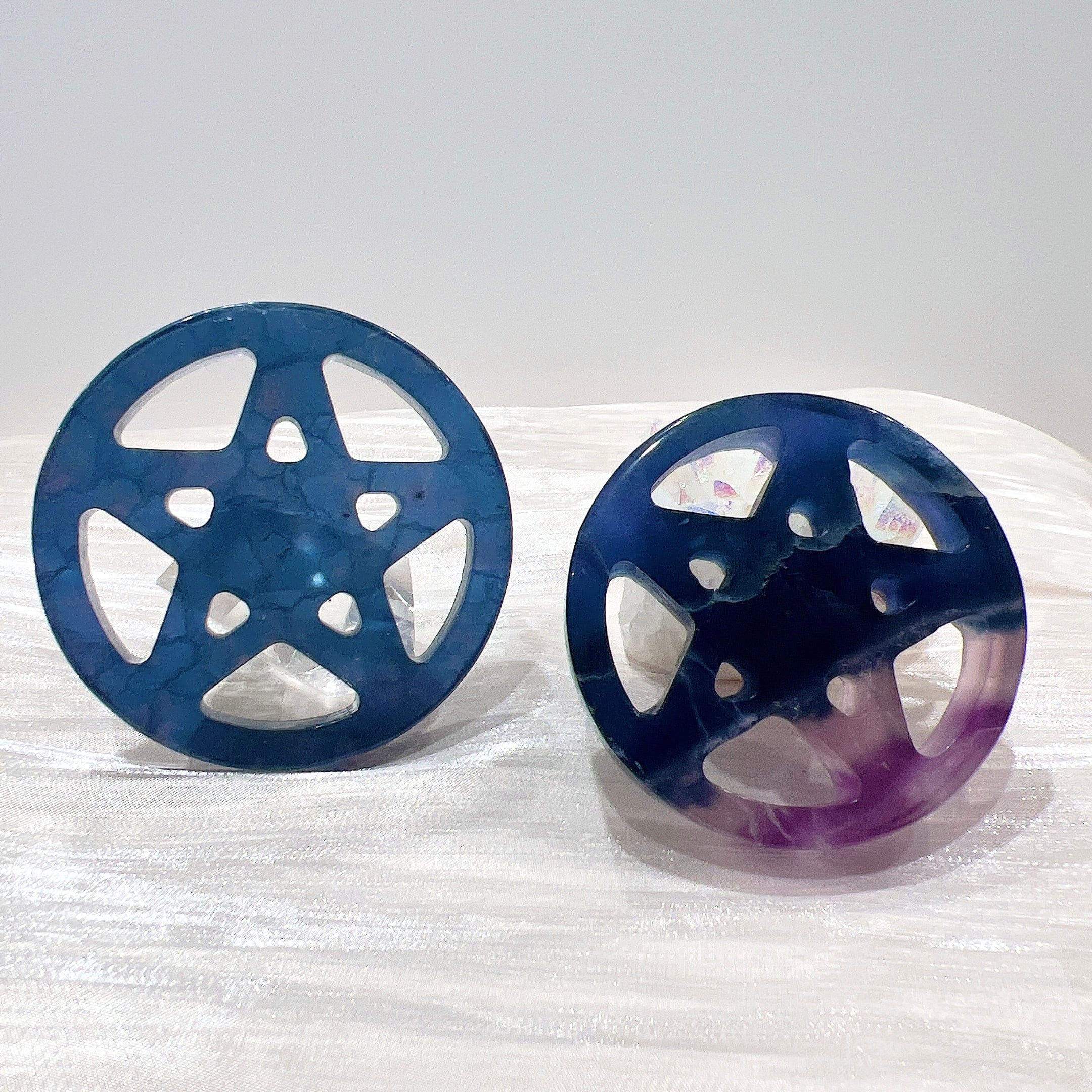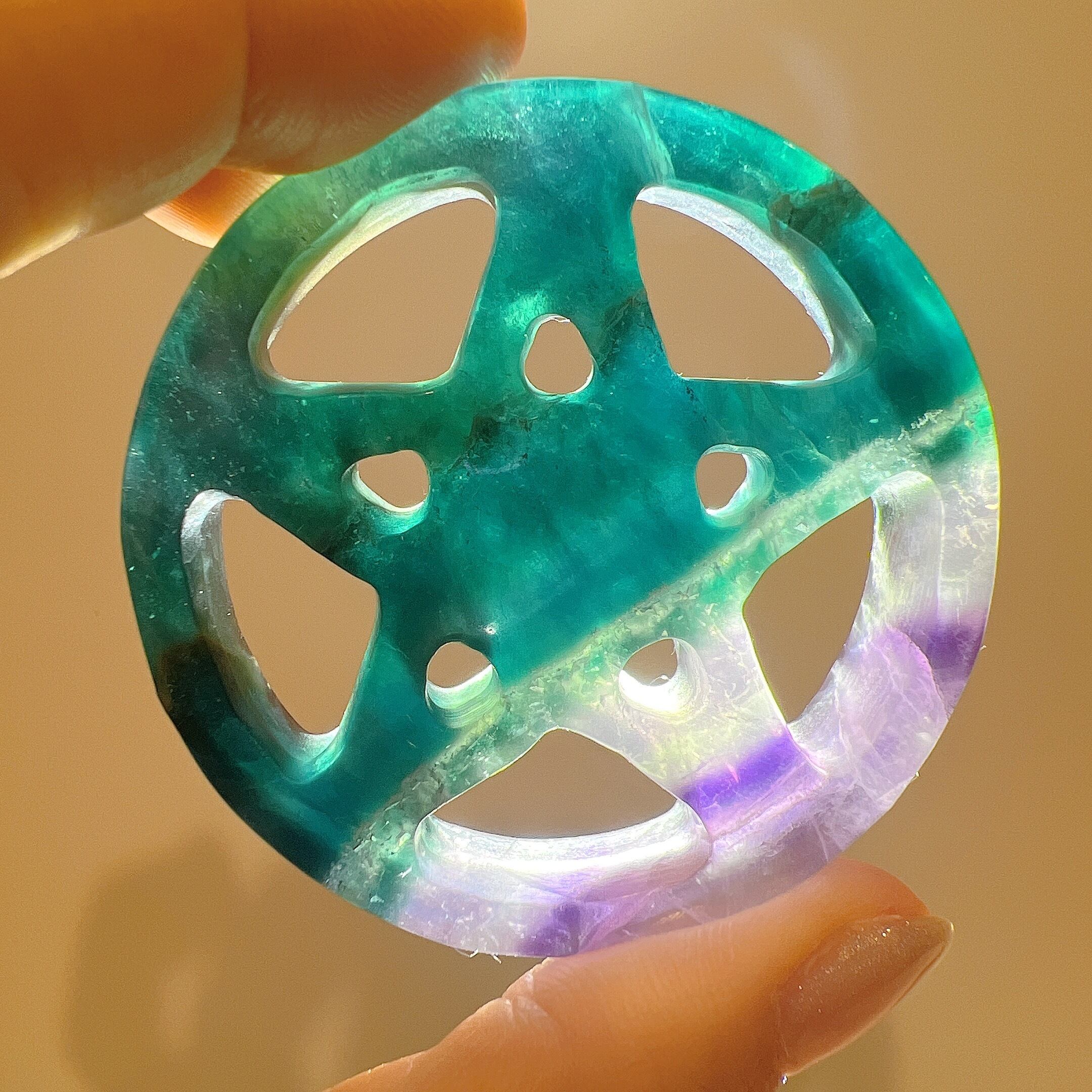 ブルーグリーンとパープルの五芒星フローライトB♡肉眼ではディープブルー&パープル、ライトアップするとグリーン&パープルに♡五芒星の形ってだけで可愛くないですか♡手のひらサイズなので持ち歩きも出来ます♡グリッドに使用したり、スフィア置き、お気に入りの天然石置きにも♡