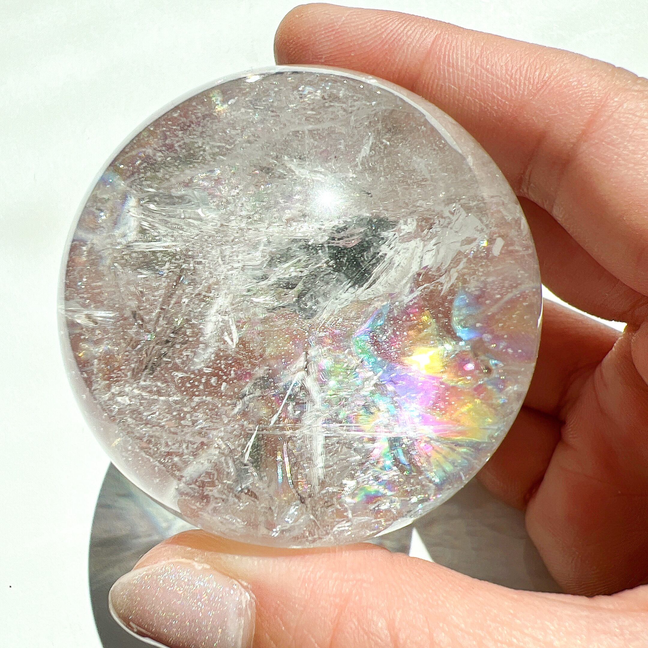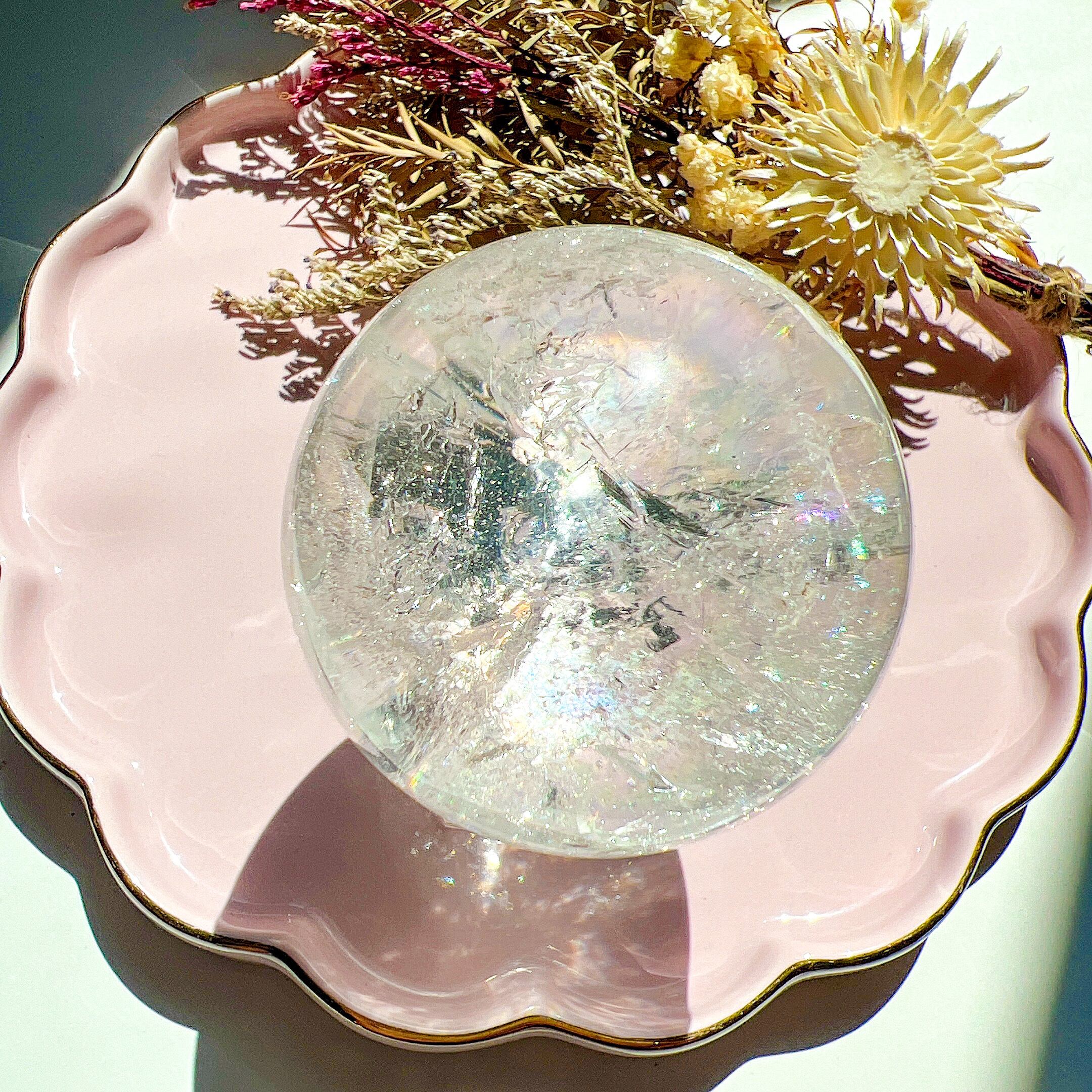 5cm超えの大きめのスフィア♡パワフルだけどどこか優しい虹がキラキラキラキラしていて見惚れてしまうスフィアです♡たっぷりの虹をクリアクォーツに閉じ込めたピースで見応え抜群です♡