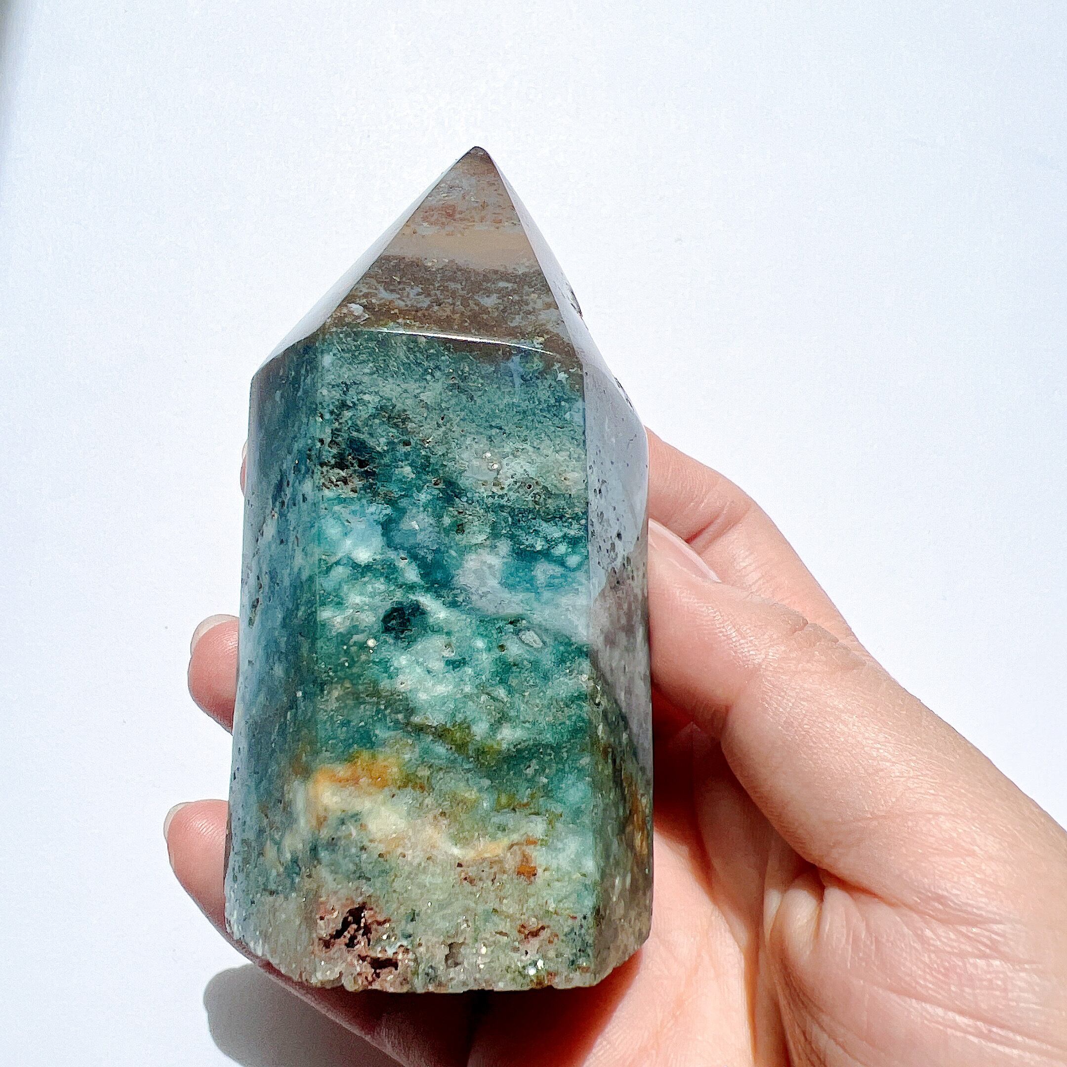 ターコイズブルーがメインの銀河のような素敵なオーシャンジャスパーポイント♡数種類のグリーンのコントラストが素敵でポイントのさきの方はライラックのようなカラーです♡しっかり太めのポイントです♡