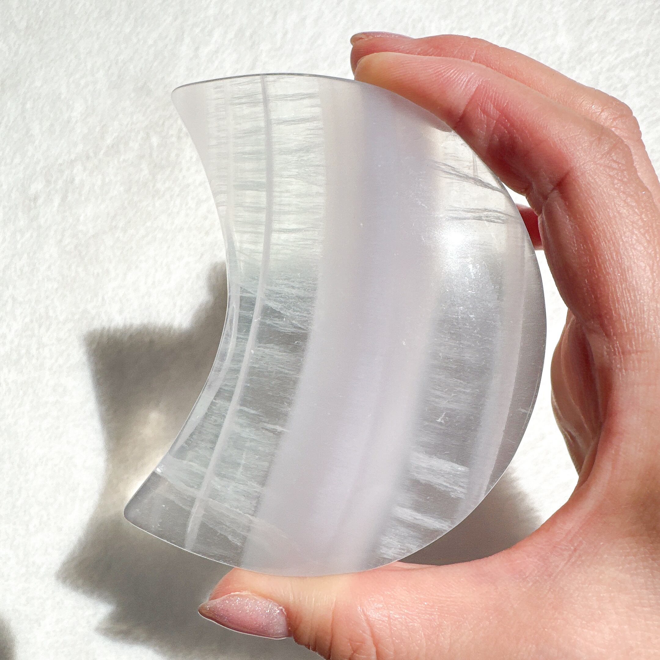 優しい色合いのラベンダーフローライトのお月さま♡Aちゃんは大きくて存在感ありありです♡透明度が高く縦に入っているラベンダーカラーのストライプが可愛いです♡ほんのりグリーンも入ってます♡