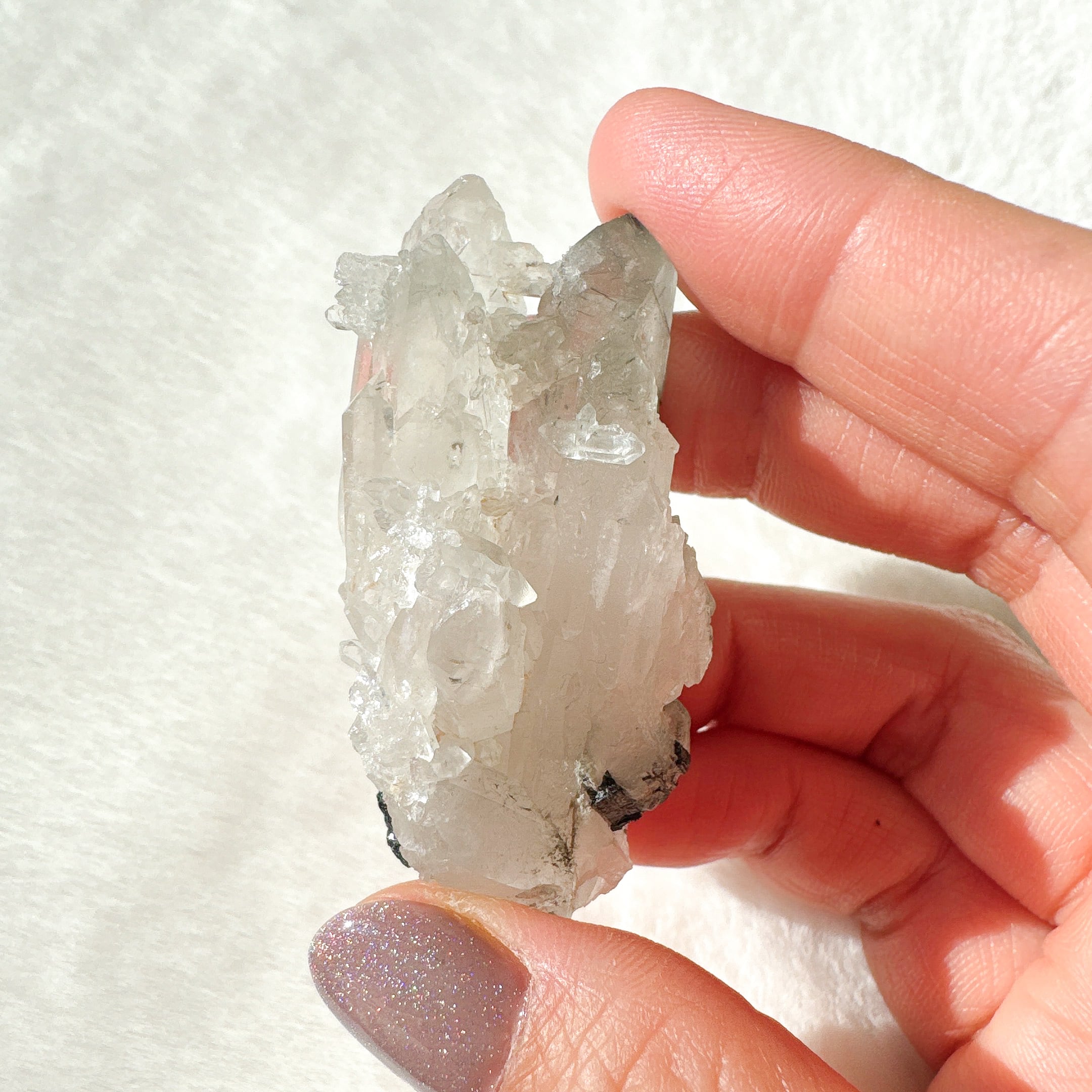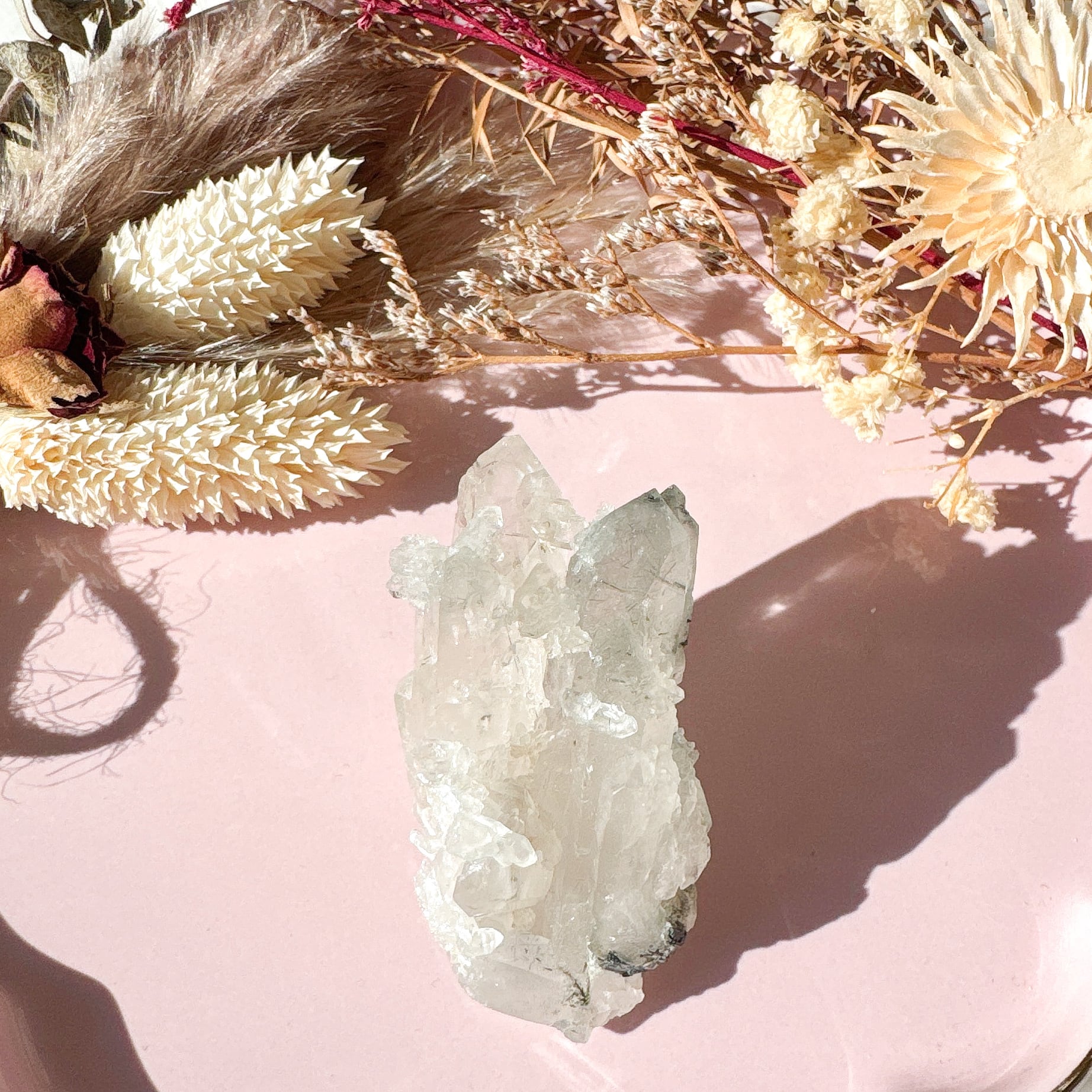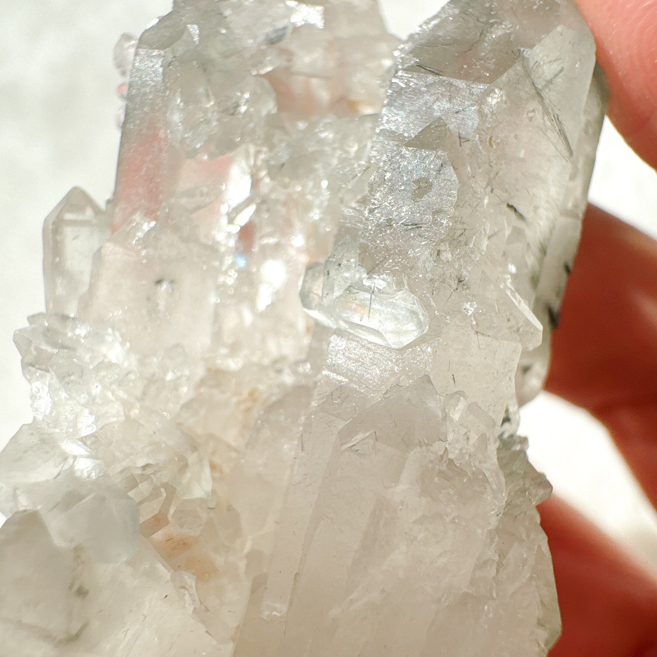 クリアクォーツにブラックトルマリンが共生している子♡透明度がめちゃくちゃ高い水晶ではありませんが、カテドラルな形の水晶に小さな赤ちゃん水晶がたくさんついているユニークな子です♡ライトアップすると色々な箇所から虹が見れるカッコよくもとっても愛らしい子です♡インスタグラムでぜひ動画もご覧ください♡